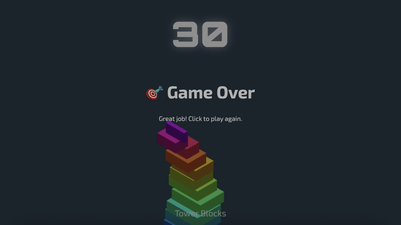 Test your timing and precision by stacking blocks as high as you can! Click or press the spacebar to drop each block perfectly.